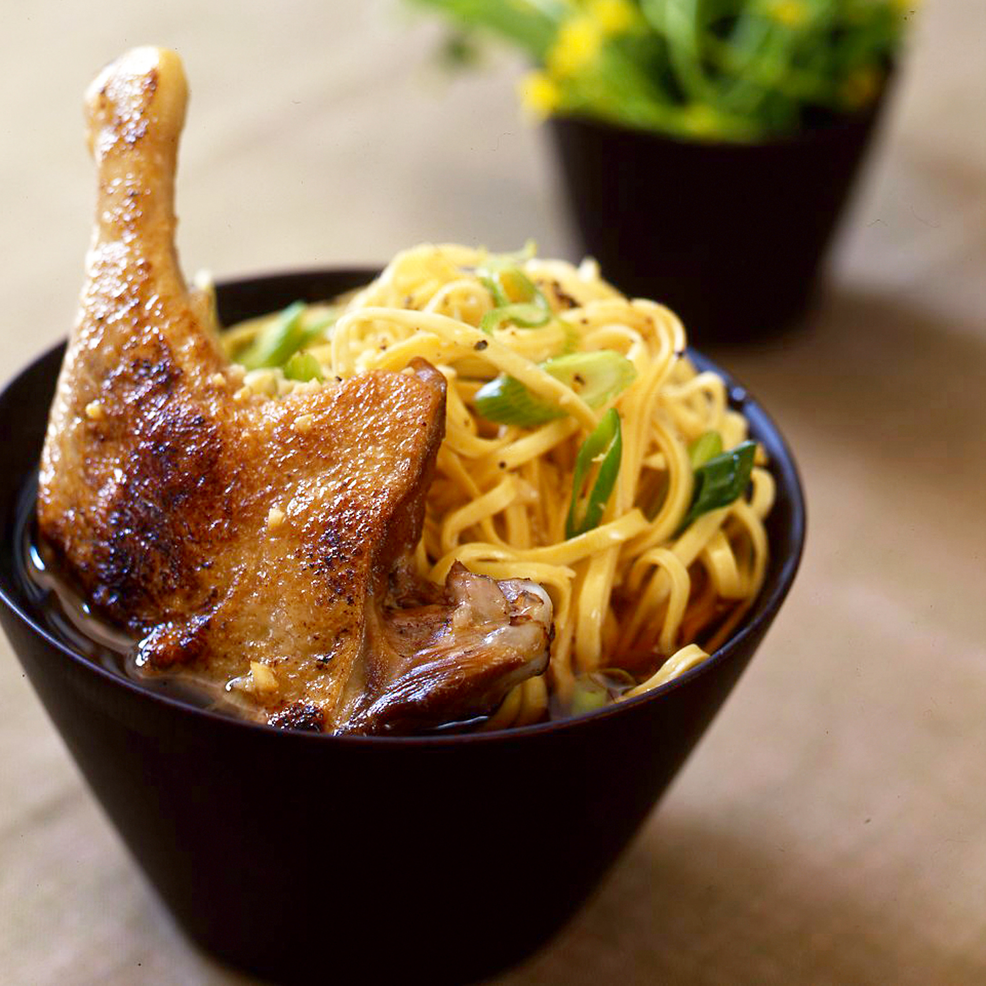 Confit duck thigh with wheat noodles